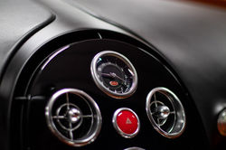 The Bugatti Veyron EB 16.4 is a mid-engine sports car designed and developed in Germany by the Volkswagen Group and Bugatti, and manufactured in Molsheim, France by French automobile manufacturer Bugatti. It was named after the racing driver Pierre Veyron. The Veyron features an 8.0-litre, quad-turbocharged, W16 cylinder engine, equivalent to two narrow-angle V8 engines bolted together. Each cylinder has four valves for a total of 64, but the configuration of each bank allows two overhead camshafts to drive two banks of cylinders so only four camshafts are needed. The engine is fed by four turbochargers and displaces 7,993 cc (487.8 cu in), with a square 86 by 86 mm (3.39 by 3.39 in) bore and stroke. The transmission is a dual-clutch direct-shift computer-controlled automatic transmission having seven gear ratios, with magnesium paddles behind the steering wheel and a shift time of less than 150 milliseconds, built by Ricardo of England rather than Borg-Warner, who designed the six speed DSG used in the mainstream Volkswagen Group marques. The Veyron can be driven in either semi-automatic or fully-automatic mode.