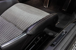 Inner door sill guards in leather with decorative stitching in contrasting colour
